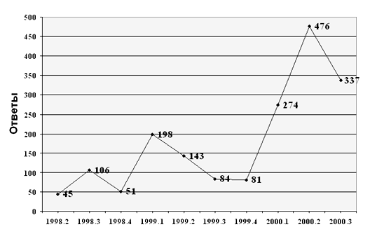 Т.е. с апреля по июнь 2000 давалось В СРЕДНЕМ по 5 ответов в день!
