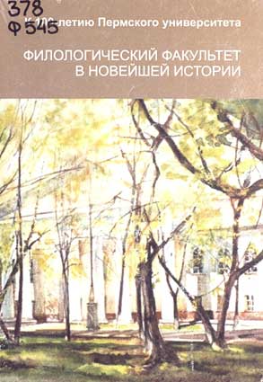 Филологический факультет в новейшей истории: Страницы из жизни факультета на рубеже XX-XXI веков / Сост. Н.Васильева; Отв. за выпуск Б.Кондаков. – Пермь: Издат. центр Пермского гос. нац. исследовательского ун-та, 2016. – 44 с. – (К 100-летию Пермского университета). 50 экз. (о) ISBN 978-5-7944-2807-0.