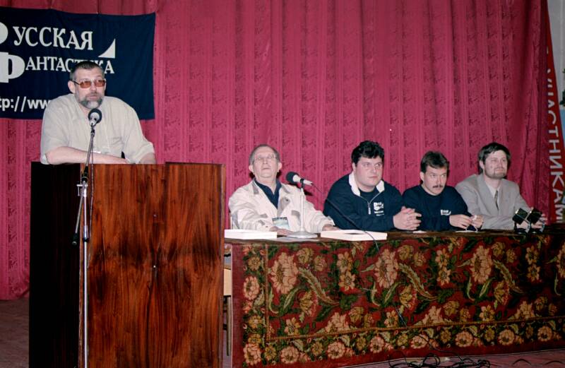 Открытие "Интерпресскона-2001". В президиуме - Борис Стругацкий, Константин Гришин, Дмитрий Ватолин, Александр Олексенко.