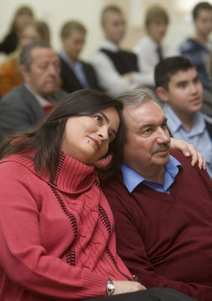 В заключение - наша последняя фотография. Мы на концерте в школе "Марина", где учится наша дочь. Мы смотрим на сцену, где сейчас Анастасия. Она в образе ведущей, сказочной Феи, в спектакле, поставленном на английском языке, по мотивам ирландского фольклора.