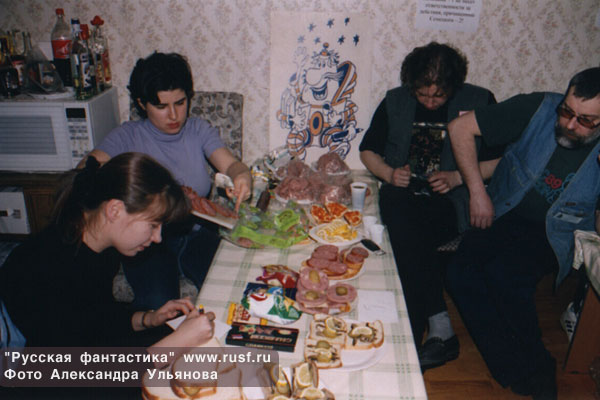 Константин Гришин, Наташа Мурашкевич и Вячеслав Яшин (Gnoom) Кир Булычев. Вячеслав Яшин и Лас на фуршете.
