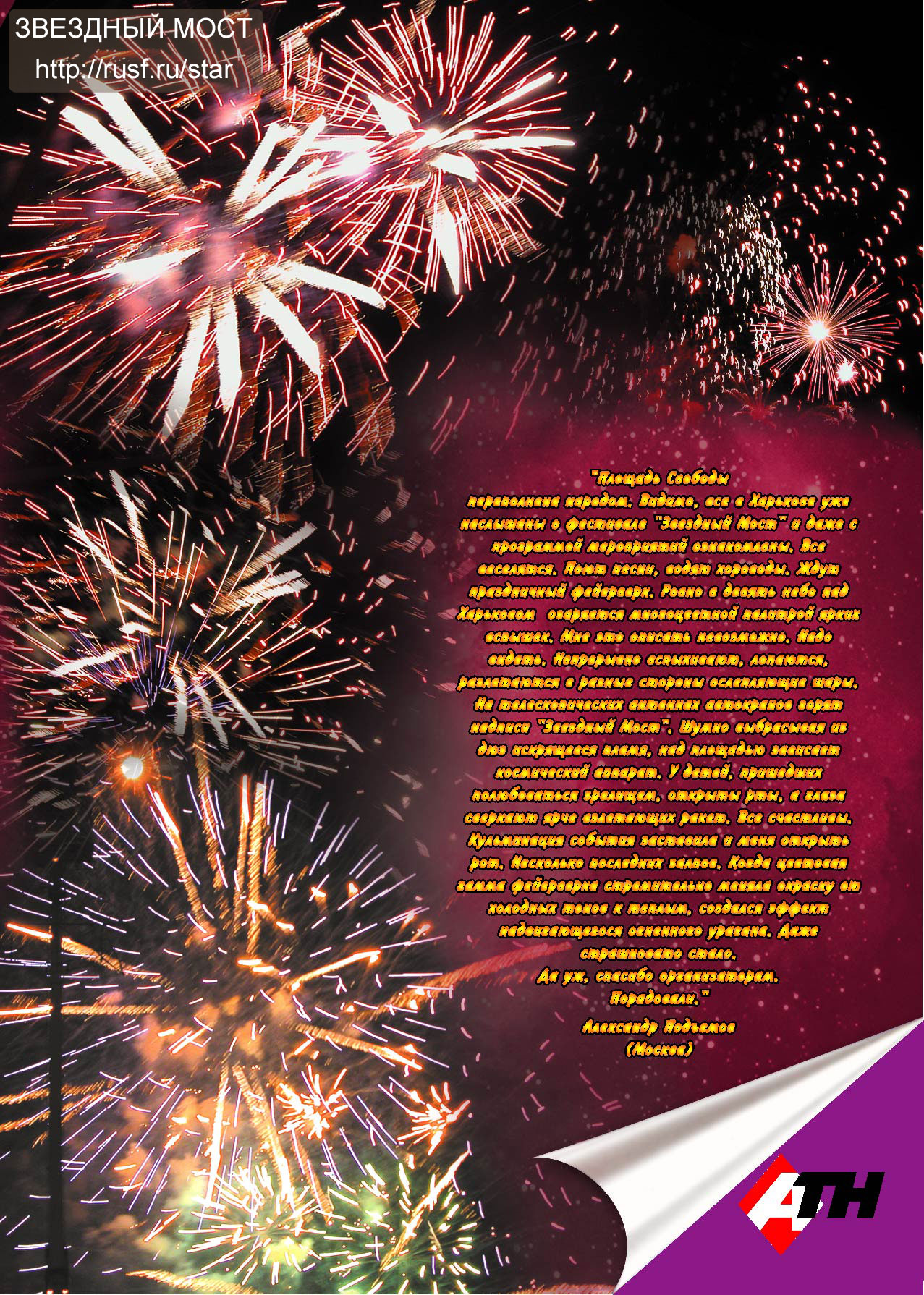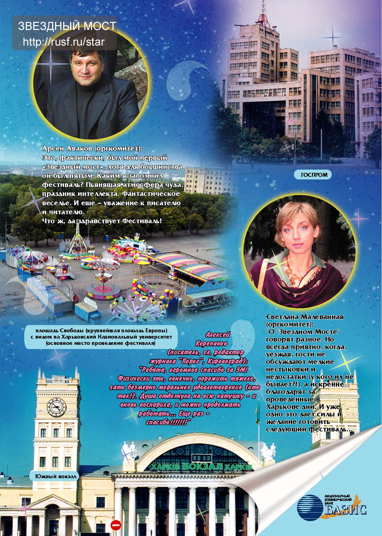Буклет по итогам "Звездного Моста-2003"Буклет и DVD-диск включены в комплект материалов, выдаваемых участникам фестиваля "Звездный Мост-2004".