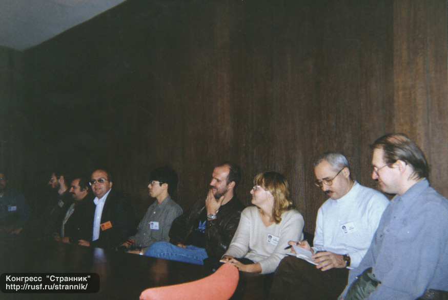 | Пресс-конференция лауреатов премии "Странник": Сергей Переслегин, Сергей Бережной, Сергей Дяченко, Николай Ютанов, Ояма Хироси, Кирилл Королев, Яна Ашмарина, Алан Кубатиев, Тахир Велимеев. |