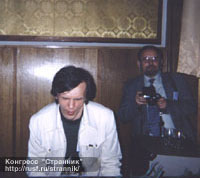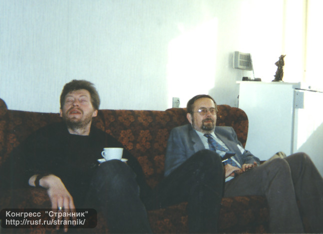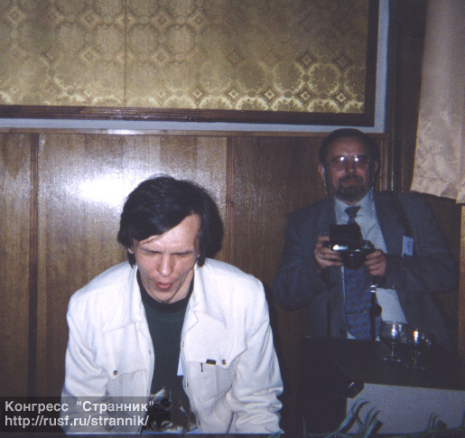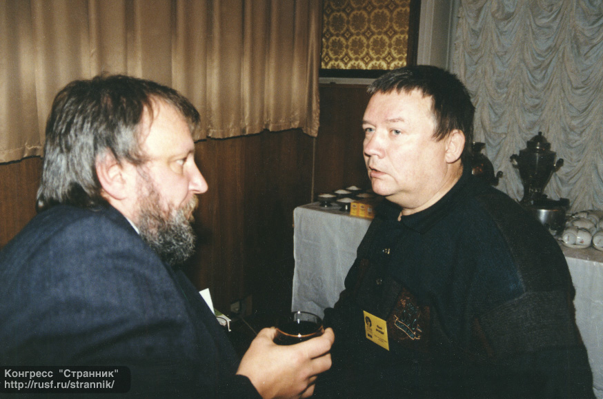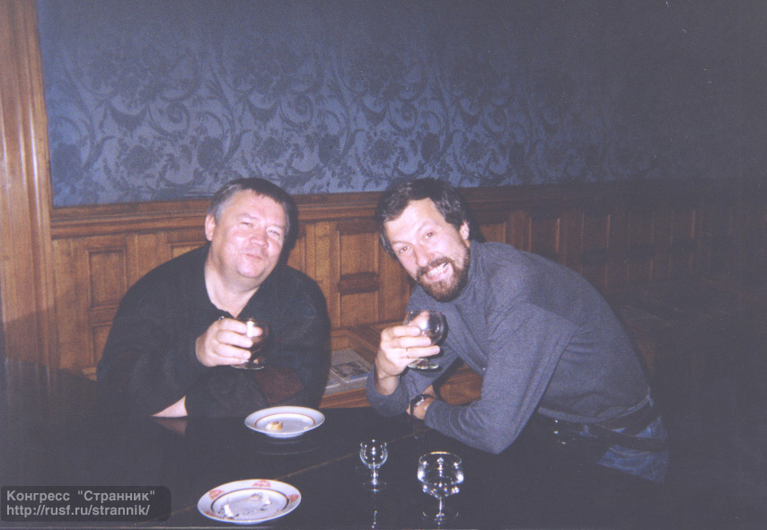 | Василий Звягинцев "между писателем" Г.Л.Олди. Слева - журналист Александр Захаров. |