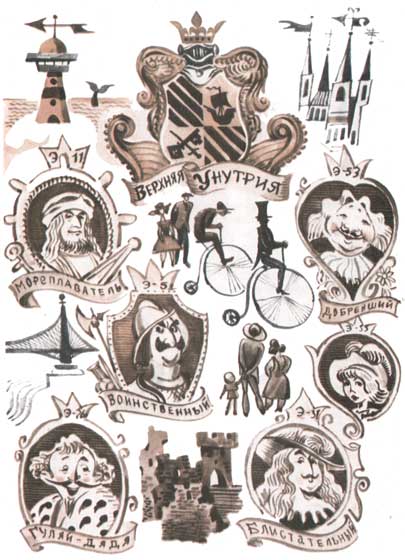 Когда-то оно было побольше и состояло из двух частей — Верхней и Нижней. Но потом Нижнюю Унутрию отвоевал у королей непокорный герцог Сан-Балконо, а Балконское герцогство завоевал еще кто-то, и половина королевства растворилась без следа среди других стран. Но Верхняя Унутрия существует до сих пор. Южная граница ее проходит по берегу Оранжевого моря. Сколько в королевстве жителей, точно не установлено. Какая территория, тоже трудно сказать. Известно только, что, если поехать вдоль границ Верхней Унутрии на велосипеде, вся дорога займет несколько часов. Есть даже официальные соревнования велосипедистов, они называются "Гонки по Королевскому кольцу". Лучшее время в прошлом году показал учитель физкультуры из столичной средней школы. Он объехал королевство за четыре часа, тринадцать минут и тридцать две секунды. Как видите, путь не очень длинный. К тому же надо учесть, что дорога, хоть и носит пышное название "Королевское кольцо", на самом деле довольно скверная. Кое-где спортсменам приходится тащить велосипеды на себе. А велосипеды, к слову сказать, очень громоздкие и неудобные: с маленьким задним колесом и громадным передним. Традиции старины и правила соревнования позволяют участвовать в гонках только на таких древних машинах.