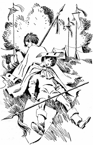 Рыцарский стан мирно спал под утренним солнцем. Чтобы согреться, Кашка пробежался по кругу. У входа в палаточный городок, привалившись друг к другу, бессовестно дрыхли часовые.